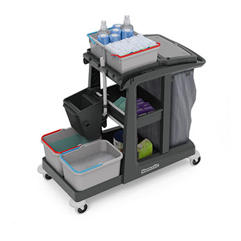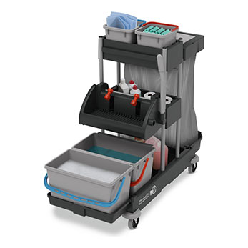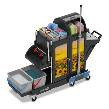 Tüm ortamlara uyacak şekilde çeşitli temizlik çözümleri ve paspas seçenekleriyle üretkenlik sağlayan kompakt ve çok yönlü temizlik arabaları